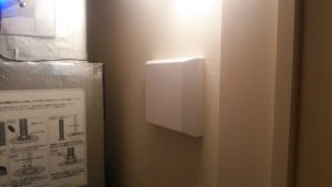 WI-FIのアダプターを設置します。施工中の写真は残念ながら撮れませんでしたが、施工後はこんな感じです。また、私は知らなかったのですが、三菱さんの話によると冬季の換気は『弱運転』にするという規定変更があったようです!換気を弱運転にすれば加湿器の効率が良くなりそうですよね。