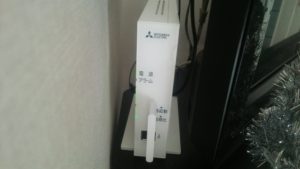 WI-FIのアダプターを設置します。施工中の写真は残念ながら撮れませんでしたが、施工後はこんな感じです。また、私は知らなかったのですが、三菱さんの話によると冬季の換気は『弱運転』にするという規定変更があったようです!換気を弱運転にすれば加湿器の効率が良くなりそうですよね。