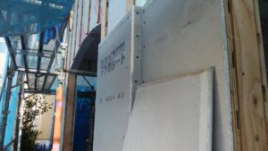具体的な構造については、内側から石膏ボード、断熱材、ハイプロテクトウォールと来て、細目の通気胴縁(つうきどうぶち)により外壁に空気が流れる空間を造ってから、セメントボード(デラクリート)を設置し、その上から外壁塗料を塗るというものです。